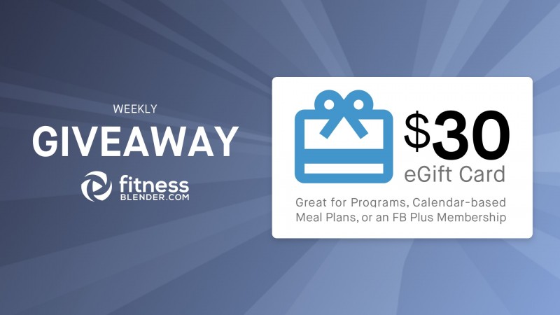 Our (randomly chosen) Giveaway winners this week will each receive a free Fitness Blender eGift Card, which you can use to purchase FB Plus, Workout Programs, or our calendar-based Meal Plan.