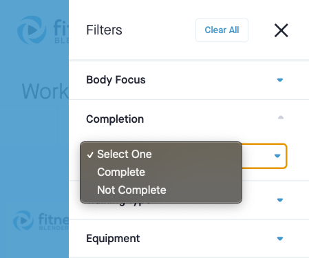 Release 2021.12.22 introduces a new workout complete filter for FB Plus members.