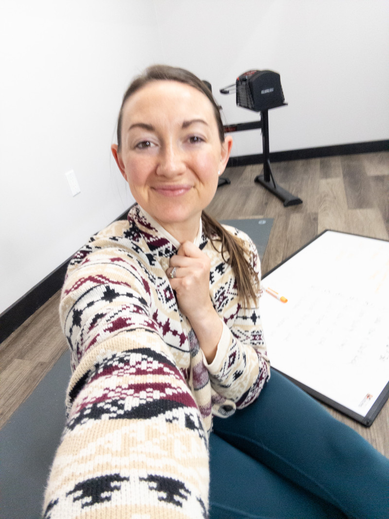 P.S. It's sweater weather here where I live and, with a basement gym, it was HARD to take my cozy blanket of a sweater off to film. But, after some mental prep, we got it done!