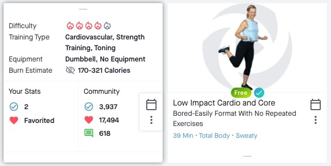 For desktop users, hover over the card to see workout details
