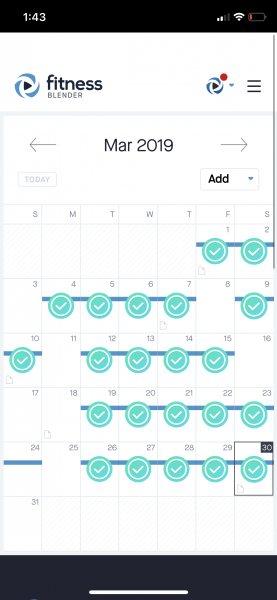 Also, as you can see by my calendar - I am definitely team-some-days-off. This is actually the quickest that I’ve finished a 4 week program - usually it takes me about 6/7 weeks! Because truthfully I don’t bust my bum every single day. I take the programs on at the pace that feels good for my body and my energy levels. And I encourage you to do the same (remember you can complete these programs at any pace you like - and as many times as you like at no extra charge). This time around, I had a goal of showing up mostly on schedule, just to make the habit of showing up for my workouts more concrete. I think it worked, as now I’m coming to my workouts excited to get going, excited to get it done (versus sort of puttering around trying to decide what to do, or skipping altogether). I may try to keep up the same show-up consistency with FB Strong, but we’ll see what life allows π