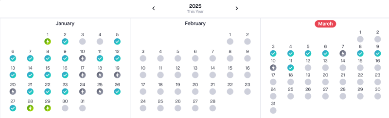 The rest of December, and most of Q1 have been much busier at work than I anticipated--hence the lack of check-ins and zero custom workouts shown on my Feb calendar.