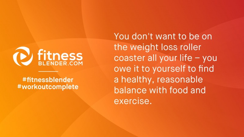 It is much easier said than done, but you don't want to be on the weight-loss roller coaster all your life – you owe it to yourself to find a healthy, reasonable balance with food and exercise.