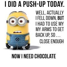 Today's minion describes my push-up abilities. 🙄 I am still working on my arm strength and I usually do wall push-ups as I have read they better approximate correct body position for push-ups compared to push-ups from your knees.