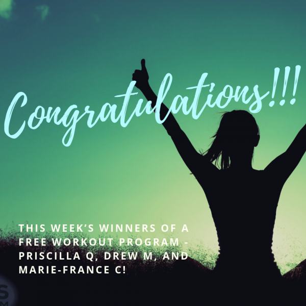 Congratulations to this week’s winners of a free Workout Program - Priscilla Q, Drew M, and Marie-France C!